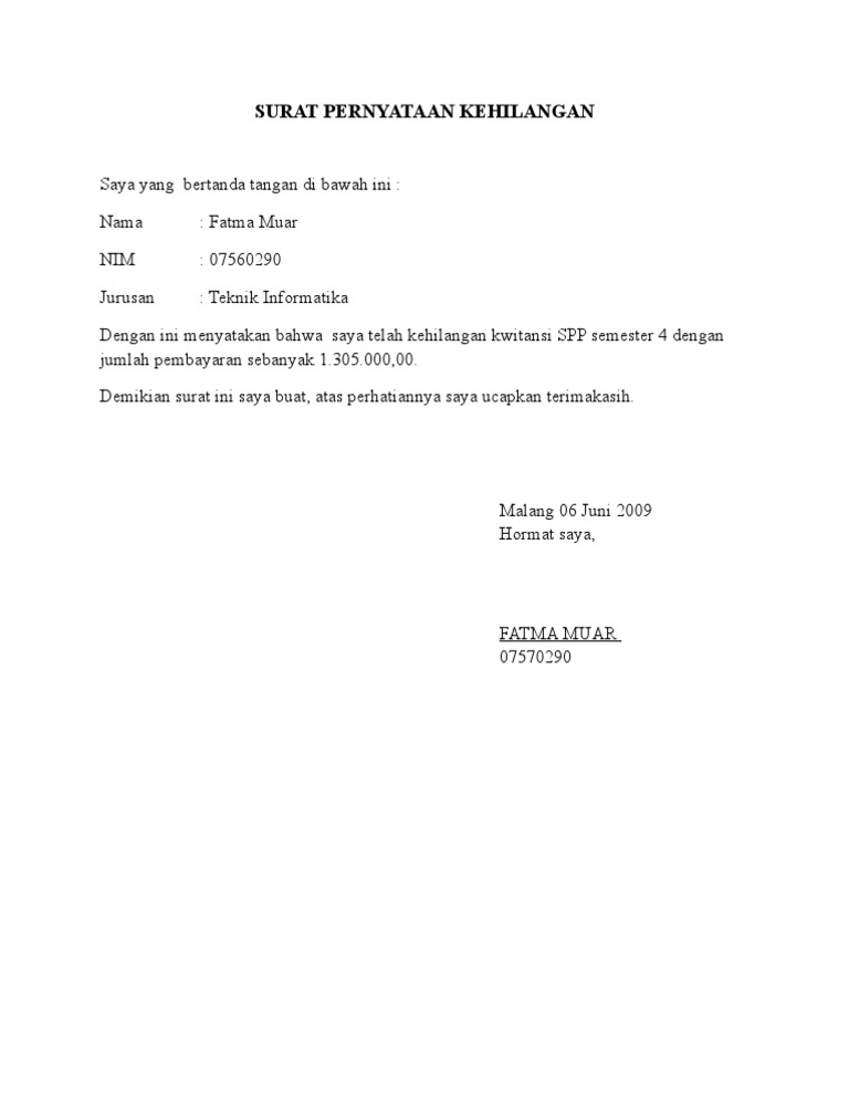 Karakteristik menonjol yang ada pada surat pernyataan. 7 contoh surat pernyataan dalam berbagai kasus gratis doc file. Surat tersebut kemudian anda bawakan ke dikmenti (dinas pendidikan menegah dan tinggi) bisa. Tata cara mengurus surat kehilangan lengkap tips cara. Semoga dapat memberikan manfaat yang berharga bagi.